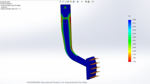 Simulated thermal and stress loads for the brake discs and brake pedal, and obtained an optimistic factor of safety value of 8.8 for the front rotor, 13 for the rear and 1.7 for the brake pedal